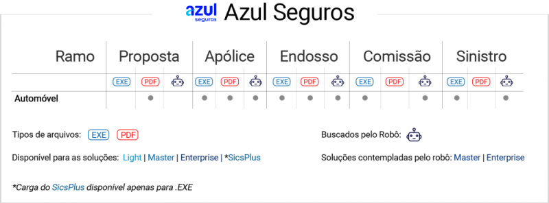 O WebSics está preparado para ler os arquivos de todas estas demais seguradoras abaixo, desde que processadas manualmente pelo usuário.